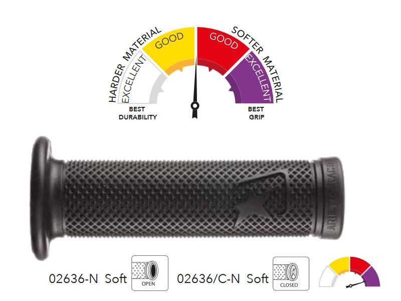 Puños Ariete 02636/C-N Aries. Desarrollodos con la colaboración de pilotos de MotoGp como Danilo Petrucci, los nuevos puños Ariete Aries 02636 ofrecen el máximo agarre con una óptima durabilidad. Estos puños se caracterizan por su diseño fino y su molde tallado a laser para ofrecer al piloto la máxima sensación de control. Disponibles en diferentes compuestos y colores para los más exigentes.