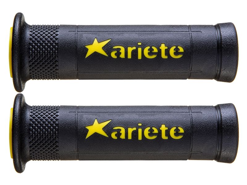 Puños Ariete 02642-GN Ariram amarillo / negro. Los nuevos puños de Ariete universales se han diseñado siguiendo las especificaciones de los pilotos profesionales para garantizar un agarre sobresaliente con una óptima durabilidad. Estos puños se caracterizan por su diseño fino y su molde tallado a laser para ofrecer al piloto la máxima sensación de control. Disponibles en diferentes compuestos y colores.