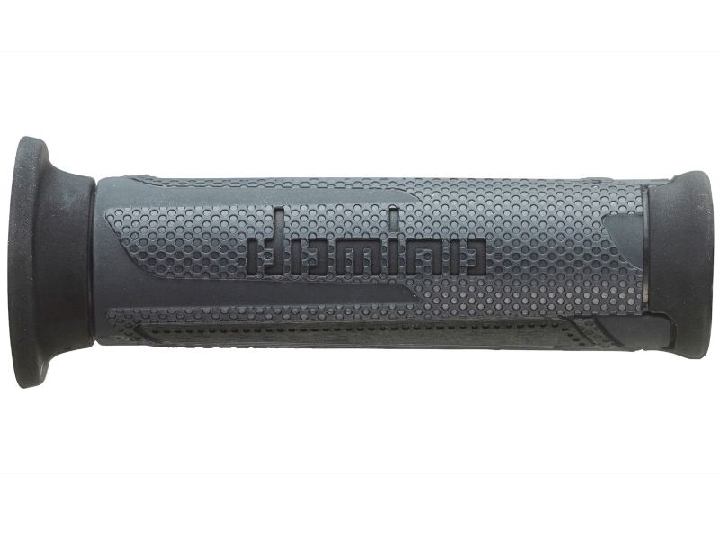Puños Domino A35041C4070C7 Turismo Antracita / Negro. Diseñado específicamente para ofrecer un excelente confort en motos de turismo y maxiscooter. Los puños Domino A350 ofrecen un diseño muy atractivo y moderno y están disponibles en una gran combinación de colores. Están realizados con goma termoplástica bicolor para proporcionar un excelente confort y durabilidad. El diseño del dibujo junto con el troquelado aportan al motorista un agarre, tacto y sensación de control óptimos. Longitud de 120 mm / Final abierto.