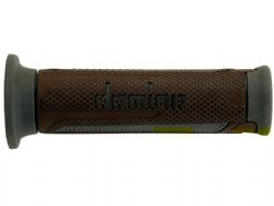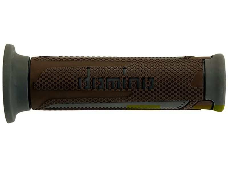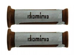 Puños Domino A35041C6564C7 Turismo Marrón / Gris. Diseñado específicamente para ofrecer un excelente confort en motos de turismo y maxiscooter. Los puños Domino A350 ofrecen un diseño muy atractivo y moderno y están disponibles en una gran combinación de colores. Están realizados con goma termoplástica bicolor para proporcionar un excelente confort y durabilidad. El diseño del dibujo junto con el troquelado aportan al motorista un agarre, tacto y sensación de control óptimos. Longitud de 120 mm / Final abierto.