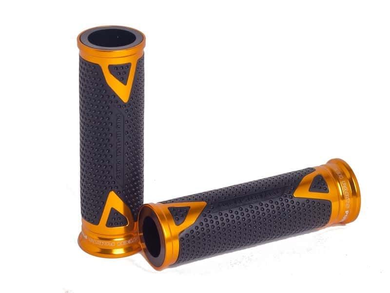 Puños Puig 8191O Hi-Tech Radikal. Puños de moto Puig de la gama Hi-Tech Radikal con diseño agresivo y muy estético para ofrecerle a tu moto un look racing. Los puños Puig Radikal incorporan una inserción de aluminio anodizada disponible en diferentes colores para poder personalizar la moto según los gusto de cada motorista. La goma del puño ofrece una textura antideslizante y un tacto suave para mayor confort. Válido para manillares de 22/24mm. Los puños Puig Radikal están disponibles en 2 medidas diferentes: 119 mm (6325) y 123 mm (8191).