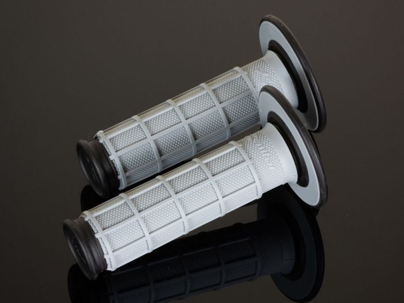 Puños Renthal G152 MX Dual Compound gris / negro. Puños Renthal G152 Dual MX de medio cuadradillo. Están especialmente diseñados para motocross y disponen de una superficie blanda para un agarre excelente. Puños en doble color para dar una apariencia más racing a tu máquina. Combinan la durabilidad de los puños y excelentes cualidades de absorción.