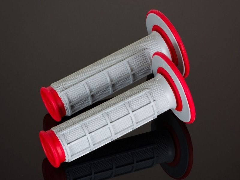 Puños Renthal G156 MX Dual Compound gris / rojo. Puños Renthal G156 Dual MX de medio cuadradillo. Están especialmente diseñados para motocross y disponen de una superficie blanda para un agarre excelente. Puños en doble color para dar una apariencia más racing a tu máquina. Combinan la durabilidad de los puños y excelentes cualidades de absorción.