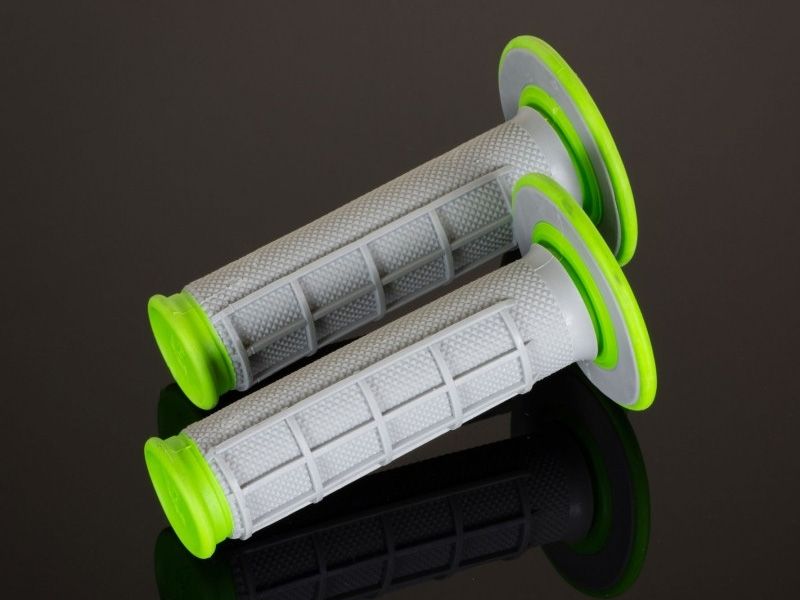 Puños Renthal G191 MX Dual Compound gris / verde. Los puños MX Dual Compound están especialmente diseñados para motocross y disponen de una superficie blanda para un agarre excelente. Puños en doble color para dar una apariencia más racing a tu máquina. Combinan la durabilidad de los puños y excelentes cualidades de absorción.