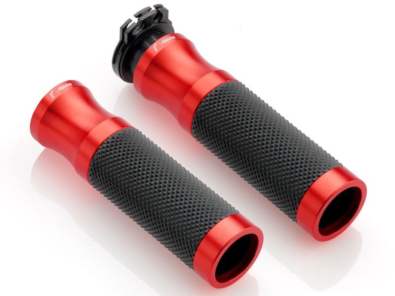 Puños para moto de carretera Rizoma Sport Line GR205R. Punto de referencia estilístico, el puño Rizoma GR205 Sport Line contiene un diseño sencillo de características deportivas y refinamiento sin igual. Obtenido con un bloque único de aluminio, que garantiza refinamiento y durabilidad. Presenta una goma racing especial que asegura agarre y fiabilidad. Además, la amplia gama de colores disponibles permite una gran variedad de aplicaciones. Adaptadores incluidos en el kit. Medidas: 119 mm (largo). Para manillares de 22 mm.