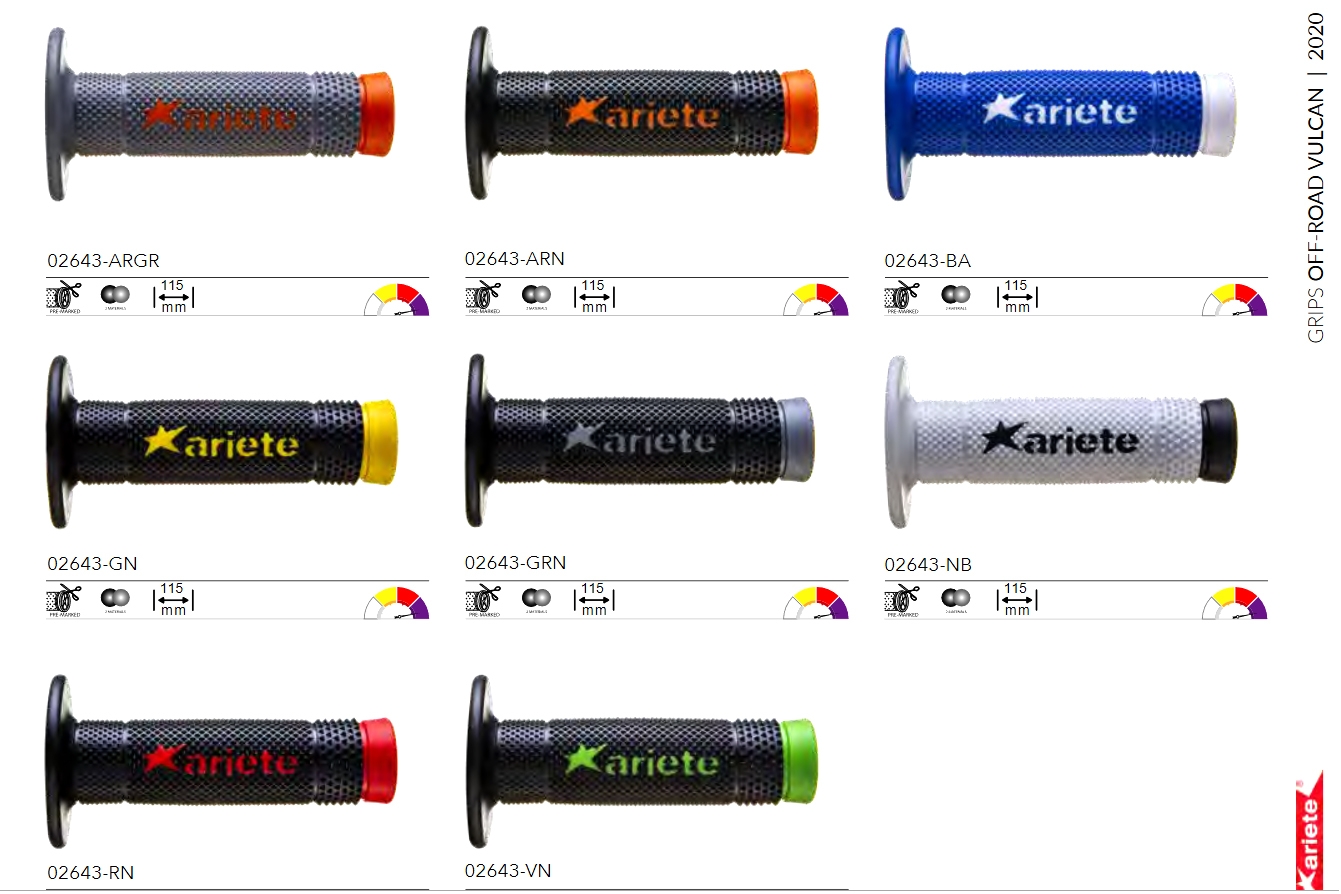 Puños Ariete Vulcan 02643-GN Amarillo / Negro. Los nuevos puños Ariete Vulcan universales se han diseñado siguiendo las especificaciones de los pilotos profesionales del off-road. Los Ariete Vulcan cuentan con la base del puño realizada con material semi-rígido anti torsión para garantizar una excelente durabilidad pero al mismo tiempo ofrecen el máximo agarre.