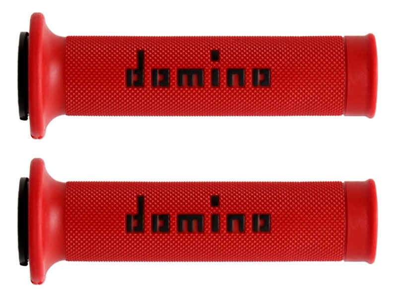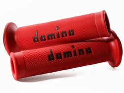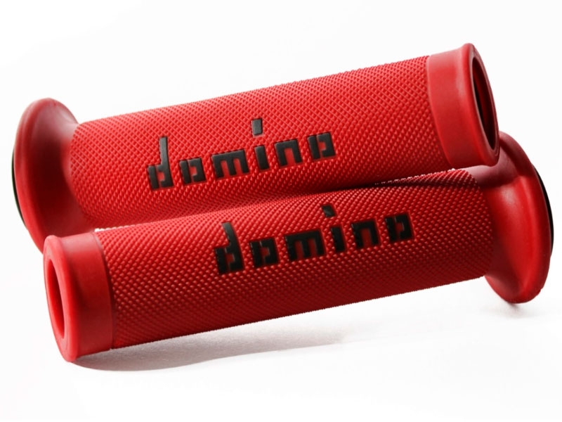 Puños Domino A01041C4042 Bicolor Carretera Rojo / Negro. Diseñados con tecnología de 2 compuestos super blandos y fabricados en goma termoplástica; combina un excelente agarre con una muy buena durabilidad. Largo de 120 mm / 125 mm.