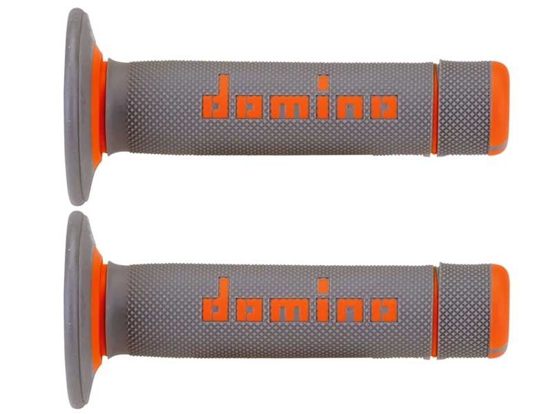 Puños Domino A02041C4552 Off-Road A020 Gris / Naranja. Diseñado específicamente para ofrecer un excelente rendimiento en motos de off-road. Los puños Domino A020 están realizados con goma termoplástica bicolor para proporcionar un excelente confort y durabilidad. Los extremos del puño están reforzados con el objetivo de extender la vida útil en caso de caída. El diseño del dibujo junto con el troquelado aportan al piloto un agarre, tacto y sensación de control perfectos. Longitud de 118 mm.