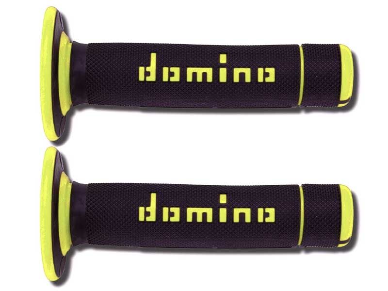 Puños Domino A02041C4740 Off-Road A020 Negro / Amarillo. Diseñado específicamente para ofrecer un excelente rendimiento en motos de off-road. Los puños Domino A020 están realizados con goma termoplástica bicolor para proporcionar un excelente confort y durabilidad. Los extremos del puño están reforzados con el objetivo de extender la vida útil en caso de caída. El diseño del dibujo junto con el troquelado aportan al piloto un agarre, tacto y sensación de control perfectos. Longitud de 118 mm.