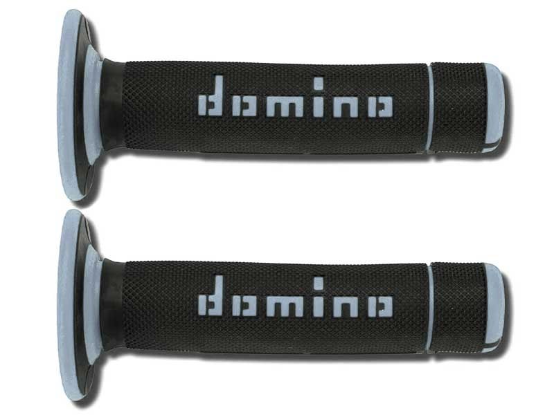 Puños Domino A02041C7170 Off-Road A020 Negro / Gris. Diseñado específicamente para ofrecer un excelente rendimiento en motos de off-road. Los puños Domino A020 están realizados con goma termoplástica bicolor para proporcionar un excelente confort y durabilidad. Los extremos del puño están reforzados con el objetivo de extender la vida útil en caso de caída. El diseño del dibujo junto con el troquelado aportan al piloto un agarre, tacto y sensación de control perfectos. Longitud de 118 mm.