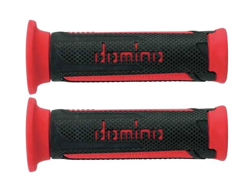 Puños Domino A35041C4270 Turismo Antracita / Rojo. Diseñado específicamente para ofrecer un excelente confort en motos de turismo y maxiscooter. Los puños Domino A350 ofrecen un diseño muy atractivo y moderno y están disponibles en una gran combinación de colores. Están realizados con goma termoplástica bicolor para proporcionar un excelente confort y durabilidad. El diseño del dibujo junto con el troquelado aportan al motorista un agarre, tacto y sensación de control óptimos. Longitud de 120 mm / Final abierto.