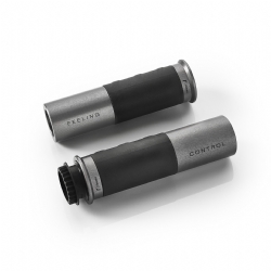 Puños Rizoma Icon GR225D Thunder Gris. Los nuevos puños universales Rizoma Icon para manillares de 22mm, ofrecen un excelente agarre y tacto, gracias a su mecanización superficial por torno y a la goma anti resbalamiento ergonómica. También destaca a gráfica que lo caracteriza, obtenida a través del procedimiento laser engraving. Los puños Rizoma Icon están fabricados en aluminio a partir de un bloque macizo y disponibles en diferentes coloraciones, obtenidas a través de procesos de anodización que le confieren y garantizan el mejor rendimiento estético en el tiempo.