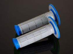Puños Renthal G162 MX Dual Tapered blando gris / azul. Los puños MX Tapered Dual están especialmente diseñados para motocross y disponen de una superficie blanda para un agarre excelente. Puños en doble color para dar una apariencia más racing a tu máquina. Su diseño único con estructura de diamante cónica le confiere mayor durabilidad y además proporciona un excelente confort al piloto. Medidas: 117 mm largo.