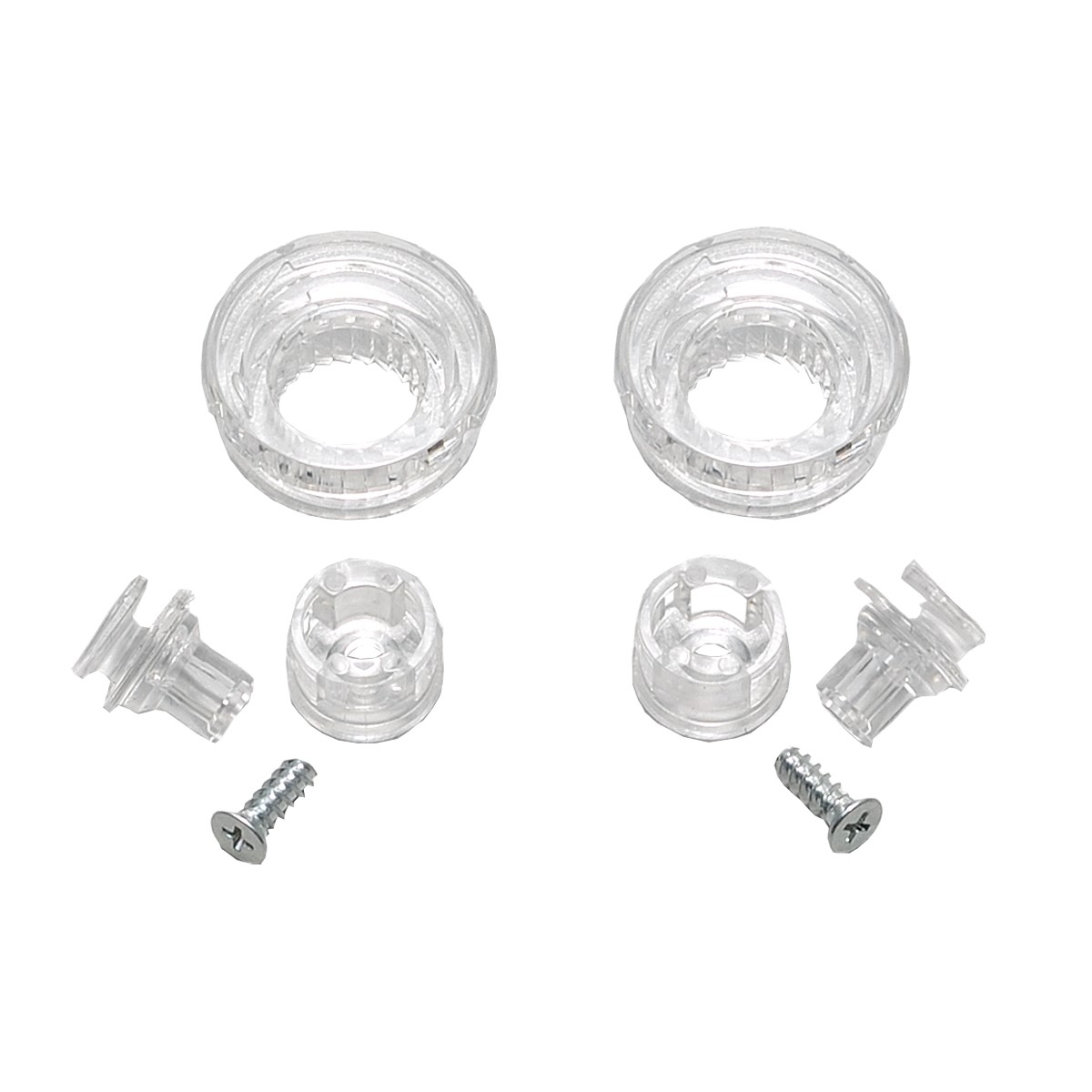 Estos tetones están diseñados para ajustarse de manera excéntrica, lo que permite un ajuste fino de la tensión de las láminas Tear Off. Esto asegura que las láminas permanezcan firmemente en su lugar incluso a altas velocidades o en condiciones de conducción intensas, pero que también se puedan arrancar con un movimiento rápido y sencillo cuando sea necesario.