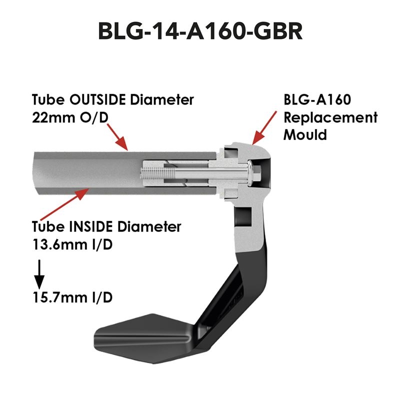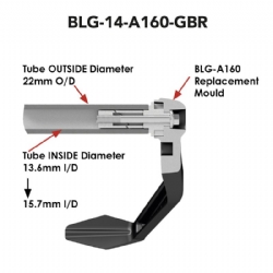 AJUSTES: El BLG-14-A160 está diseñado para un diámetro interno de tubo de 13,6 mm a 15,7 mm I/D TEN EN CUENTA: solo palanca única.