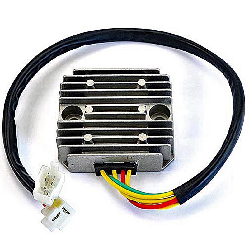 Regulador corriente moto DZE 04172547 Honda NX Dominator 12V-35A-Trifase-5 cables-2 conectores. Regulador de corriente para moto DZE Electronics con 04172547. El regulador de corriente DZE Electronics es un producto de muy buena calidad y perfecto para sustituir por el costoso regulador de corriente original en caso de rotura.