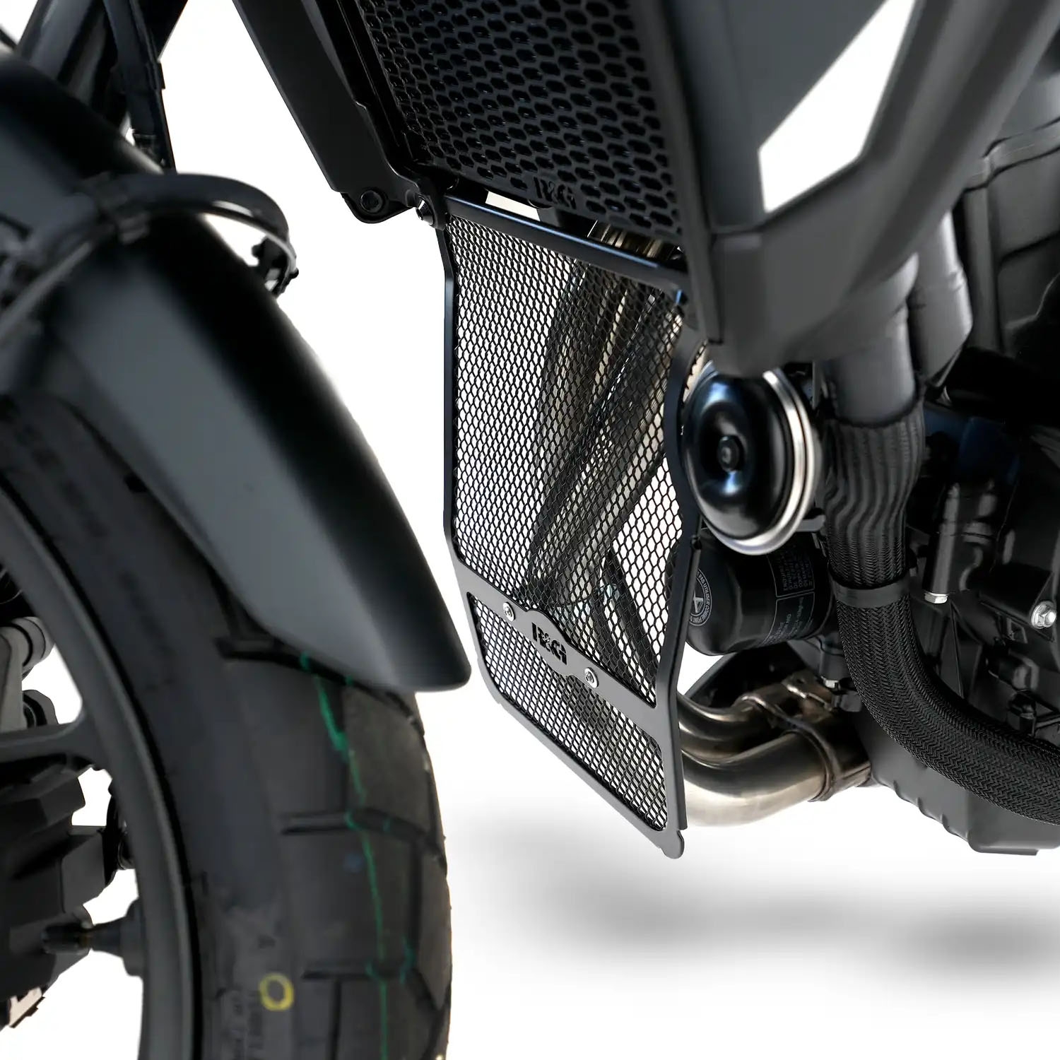 Vienen en opciones de color negro y rojo, permitiéndote personalizar el look mientras aseguras la protección. La instalación de una rejilla protectora de colectores no sólo es una medida de protección para el radiador y los enfriadores de aceite, sino también para la parte frontal del motor. Las piedras y otros objetos lanzados por la rueda delantera a altas velocidades pueden causar daños al pintado del motor, llevando a la corrosión prematura.