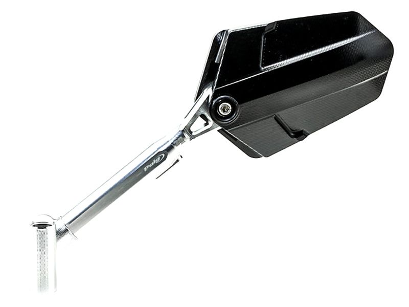 Retrovisor Puig 014DN Hi-Tech Explorer izquierdo (plata / negro). Diseñado especialmente paraa la motos ruteras, el espejo Puig Explorer se caracteriza por su diseño de líneas suaves y acabado de alta calidad. El espejo ofrece un peso muy ligero y ofrece una alta variedad de ajustes gracias al su sistema extensible de 30 mm y sus 4 ejes de rotación. Realizado a partir de un bloque macizo de aluminio y posteriormente mecanizado, el espejo Puig Explorer cuenta con una superficie anonizada para mayor resistencia al paso del tiempo. Disponible en 4 colores diferentes.