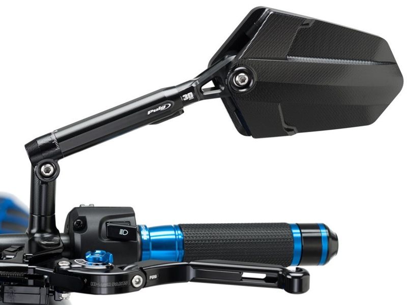 Retrovisor Puig 014NN Hi-Tech Explorer izquierdo (negro / negro). Diseñado especialmente paraa la motos ruteras, el espejo Puig Explorer se caracteriza por su diseño de líneas suaves y acabado de alta calidad. El espejo ofrece un peso muy ligero y ofrece una alta variedad de ajustes gracias al su sistema extensible de 30 mm y sus 4 ejes de rotación. Realizado a partir de un bloque macizo de aluminio y posteriormente mecanizado, el espejo Puig Explorer cuenta con una superficie anonizada para mayor resistencia al paso del tiempo. Disponible en 4 colores diferentes.