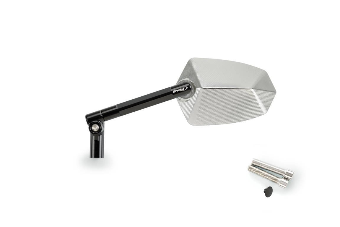 Retrovisor Puig 019ND GT.1 Izquierdo. Se trata de la evolución del retrovisor Puig GT. El nuevo GT.1 incorpora una rótula final que permite la regulación de retrovisor con la mano. Mecanizado a partir de un bloque macizo de aluminio, el retrovisor Puig Hi-Tech GT.1 posee un anodizado final de alta calidad que aemás permite la presentación en un solo color (brazo y carcasa espejo) o en combinación de colores plata-negro. Se suministra con tornillos (M10/125 y M8) para su fijación en el soporte del manillar. Consultar disponibilidad de adaptadores específicos para cada moto.