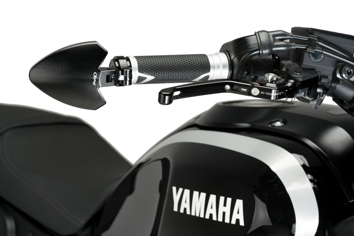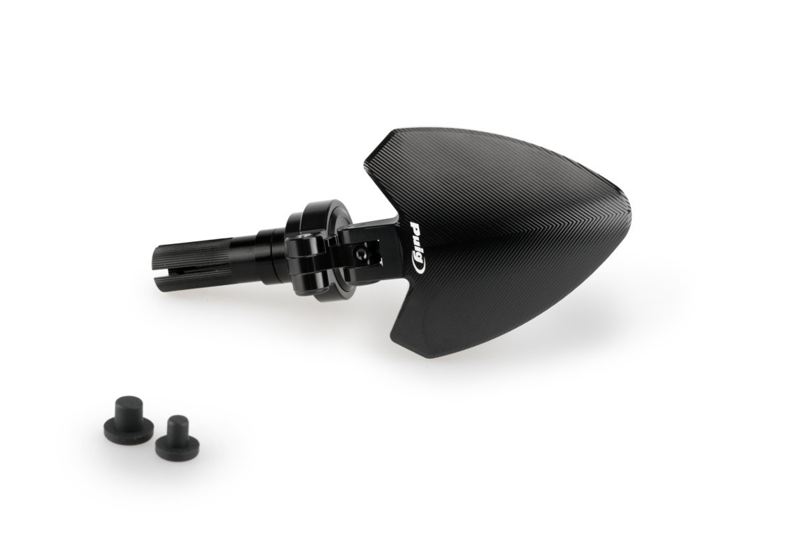 Retrovisor Puig 20859N Fold Derecho. El nuevo retrovisor de moto Puig Fold está realizado mediante proceso mecanizado a partir de un bloque de aluminio y anodizados en colores.Ha sido diseñado siguiendo las últimas tendencias, destacando sus formas bombeadas. El espejo Puig Fold ofrece también una óptima funcionalidad, gracias a que esta provisto con un mecanismo de giro que permite abatirlo para protegerlo al pasar por zonas estrechas y recuperar su posición inicial sin ningún esfuerzo. Retrovisor montado en el terminal de manillar con mecanismo de fijación universal. Consultar la necesidad de adaptadores específicos según modelo de moto.