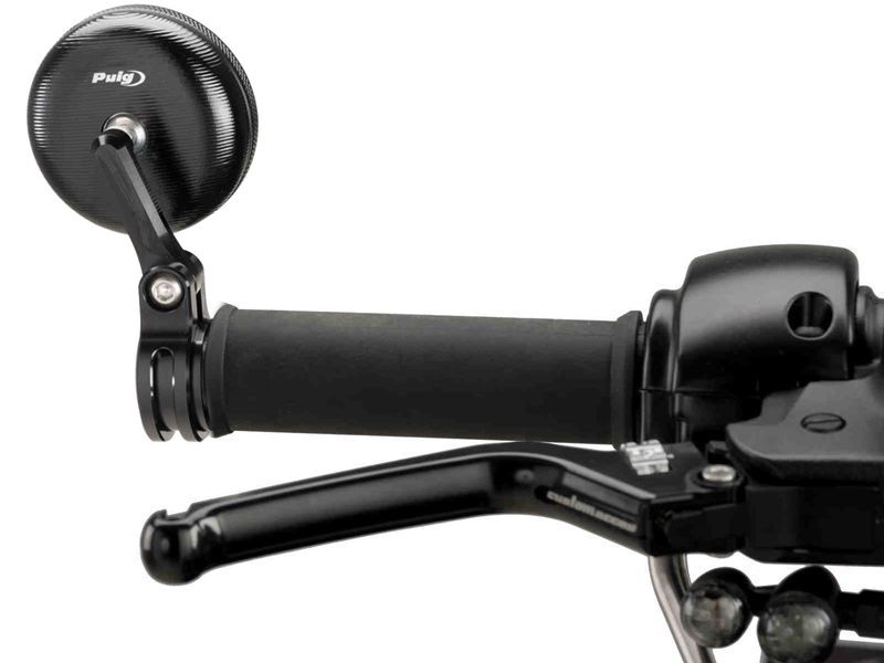 Retrovisor Puig 9506N Hi-Tech Tracker negro. Retrovisor de moto universal Puig 9506N modelo Hi-Tech Tracker con sujeción en el manillar (se sustituye el contrapeso de serie). Mecanizado a partir de un bloque macizo de aluminio, el retrovisor Puig Hi-Tech Tracker ofrece un diseño moderno pensado para motos tipo café racer y no está homologado.