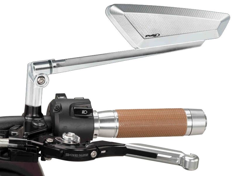 Retrovisor Puig 9884D Hi-Tech Hypernaked negro plata. Retrovisor de moto Puig 9884D modelo Hi-Tech Hypernaked universal combina un diseño simple y dinámico para adaptarse a la motocicletas de última generación. El retrovisor Hypernaked cuenta con un peso reducido y una amplia posibilidad de regulaciones gracias en parte a su sistema extensible de 30 mm y sus tres ejes de rotación. Realizado a partir de un bloque de aluminio mecanizado y posteriormente anodizado para conseguir una excelente superficie y acabado de mayor calidad. Incluye kit de adpatador 10 x 1,25 con rosca a izquierda.