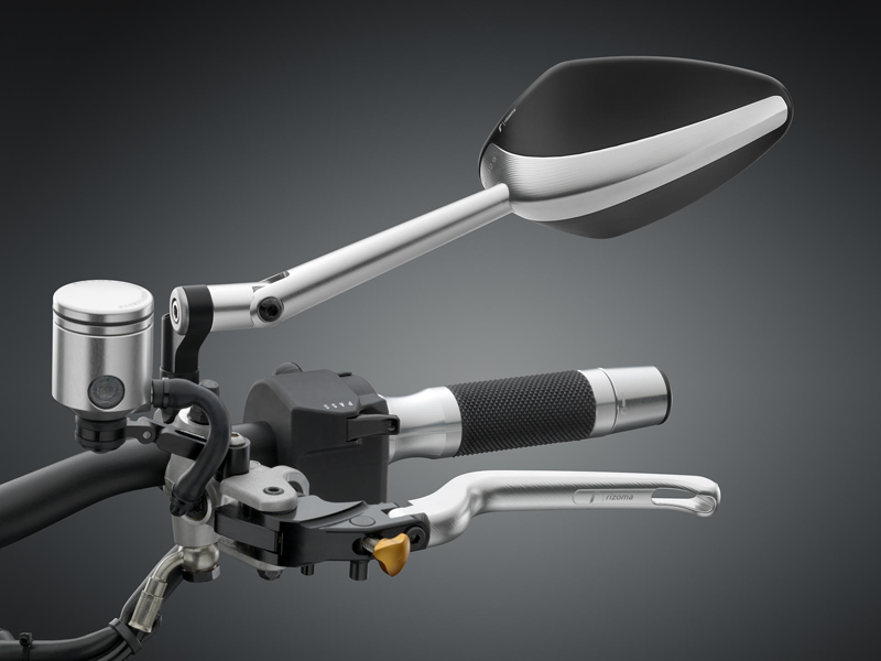 Espejo Rizoma Veloce Naked BS206A Plata (modelo Veloce Naked). Veloce Naked by Rizoma cuenta con una amplia superfície reflectante acorde con las normativas de homologación europea y cristal convexo antideslumbramiento; dos valederas características las cuales garantizan un óptima visión bajo cualquier condición. Su forma aerodinámica mitiga las turbulencias en altas velocidades. Fabricado con dos materiales distintos hacen que disminuya drásticamente su peso total y le confieren un look agresivo. El precio es de un espejo sin adaptador.