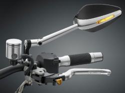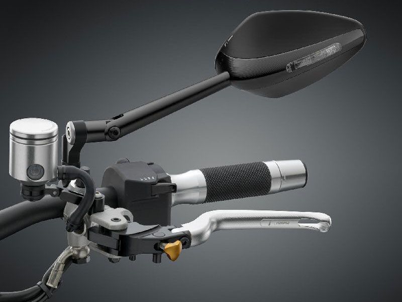 Espejo Rizoma Veloce L Naked BS306B Negro (modelo Veloce L Naked). Veloce L naked by Rizoma lleva intregrado una luz de intermitente, excelente opción para sustituir el retrovisor en motos deportivas, como también una alternativa para motos naked, dándoles así un look más deportivo. Cuenta con una amplia superfície reflejante acorde con las normativas de homologación europea y cristal convexo antideslumbramiento; dos valederas características las cuales garantizan un óptima visual en cualquier condición. Su forma aerodinámica mitiga las turbulencias en altas velocidades. Fabricado con dos materiales distintos hacen que disminuya drásticamente su peso total y le confieren un look agresivo. El precio es de un espejo sin adaptador.