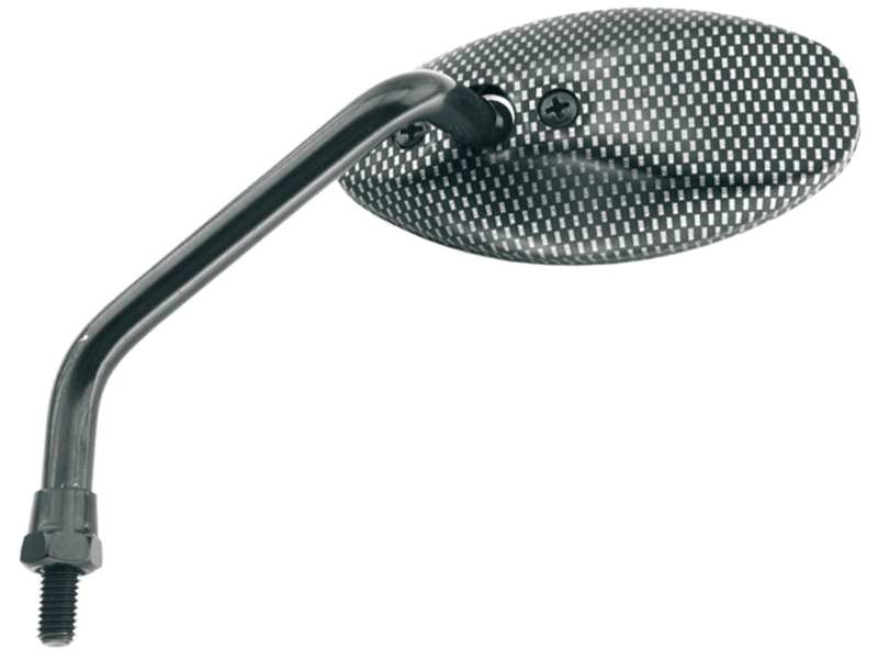 Espejo Vicma E717I Izquierdo. Espejo de moto no homologado universal tipo tuning. Color look carbono. Ovalado 110x55 mm. Precio por unidad.