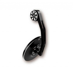 Se monta en el extremo del manillar mediante abrazadera y es válido para manillares de 22,2 mm (7/8”) y 25,4 mm (1”) gracias a los anillos reductores incluidos. Puede instalarse tanto en el lado izquierdo como en el derecho, e incluso en posición normal o colgando, según el estilo que se busque. La forma del cabezal ofrece una buena superficie de visión manteniendo unas líneas compactas y bien integradas con la moto.