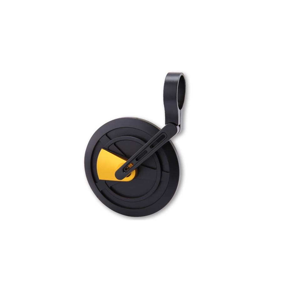 El Highsider Pro Enterprise EP1 en acabado negro/oro es un retrovisor al puño de manillar con estética claramente futurista y racing. La carcasa redonda de aluminio mecanizado CNC combina el negro con detalles en color oro, creando un contraste muy llamativo, ideal para motos naked, deportivas, streetfighter y preparaciones custom donde cada detalle visual cuenta.