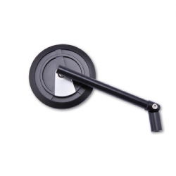 La serie HIGHSIDER ENTERPRISE-EP1 destaca por su superficie fresada y un diseño muy técnico, donde los detalles se integran en la forma redonda del espejo. El conjunto está realizado en aluminio negro con tapa disponible en varios colores (según referencia), y cuenta con un brazo ajustable que permite orientar el espejo con precisión. Puede montarse tanto en el lado izquierdo como en el derecho, manteniendo siempre la homologación E para su uso en carretera.
