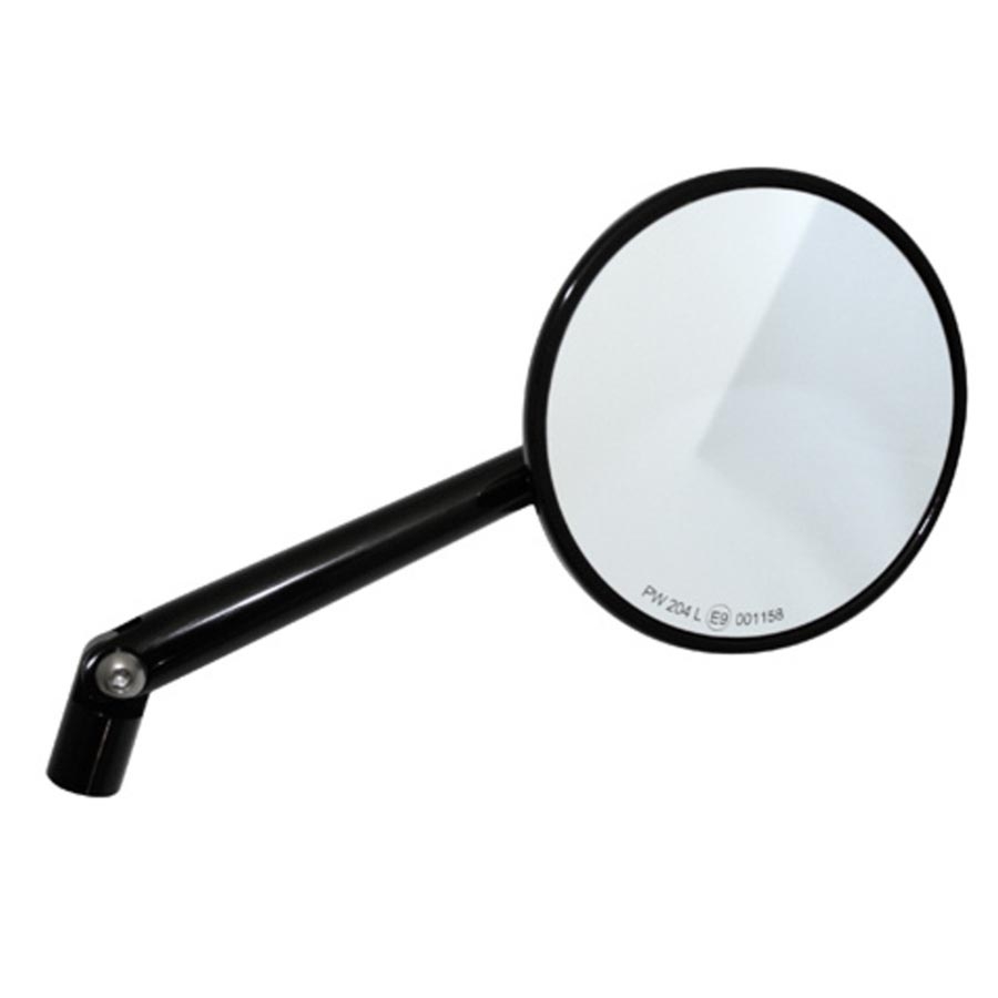 El retrovisor de manillar HIGHSIDER pro Montana en color negro es un clásico moderno: diseño redondo, acabado en aluminio anodizado negro y brazo ajustable para que puedas conseguir siempre la mejor visión trasera. Es un espejo universal, pensado para montar en el manillar con rosca estándar y mantener una estética limpia y elegante en naked, deportivas, café racer o motos retro.