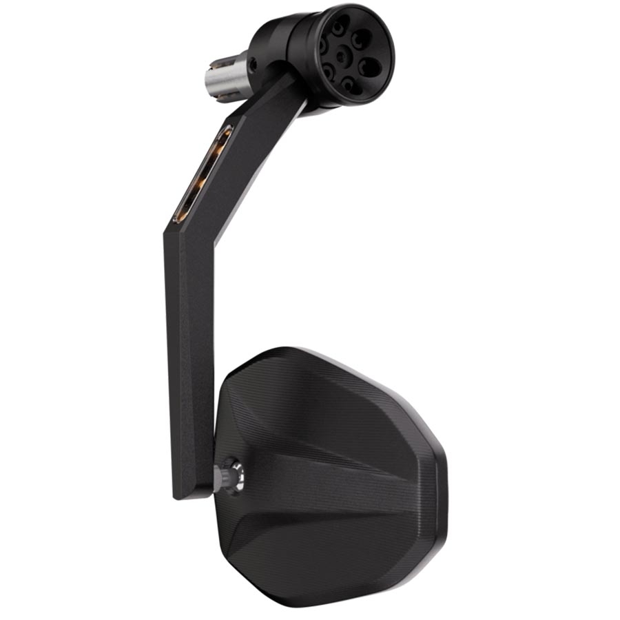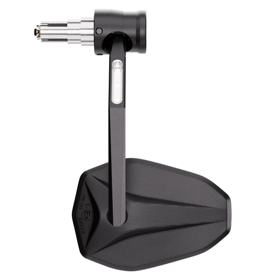 Este modelo está diseñado para montarse en el interior del manillar, sustituyendo al contrapeso original. Gracias a su sistema de sujeción universal, es apto para manillares con diámetro interior de 12 a 22 mm, cubriendo la mayoría de manillares de aluminio o acero de Ø22,2 mm y Ø25,4 mm. El indicador LED va completamente integrado en el brazo del espejo, logrando una instalación muy limpia y moderna. Puede utilizarse en el lado izquierdo o derecho, y está homologado tanto el retrovisor como el intermitente.