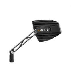Pertenecen a la gama Highsider Pro y están diseñados para montarse directamente en el manillar. La cabeza del espejo, de forma asimétrica y con líneas fresadas CNC, se apoya sobre un brazo de aluminio que se fija al soporte del manillar mediante un adaptador roscado M10 x 1,25, ofreciendo un anclaje sólido y compatible con muchos modelos. El diseño Wave no solo aporta personalidad, también ayuda a conseguir un buen campo de visión trasera.