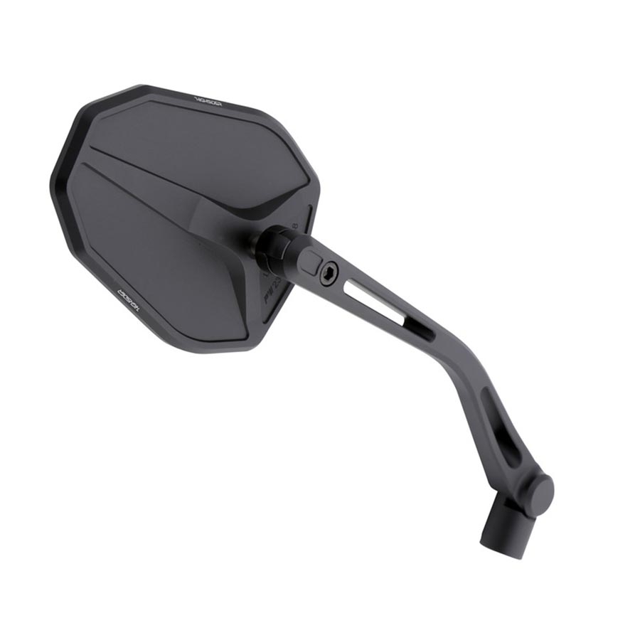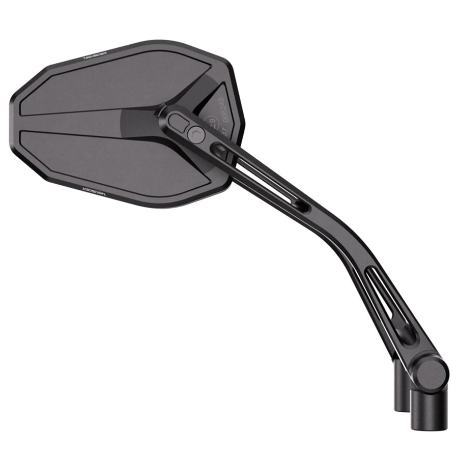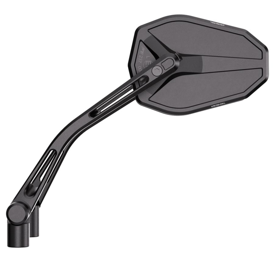 Los retrovisores de manillar HIGHSIDER Pro Victory-Slim negros llevan el diseño minimalista al extremo: un cuerpo de espejo ultrafino de solo unos 5 mm de grosor (sin contar el soporte esférico) y un acabado de alta calidad que transforma el aspecto de tu moto. El cuerpo del retrovisor, el brazo y la fijación están fabricados en aluminio, con superficie negro mate seda que refuerza su imagen premium.