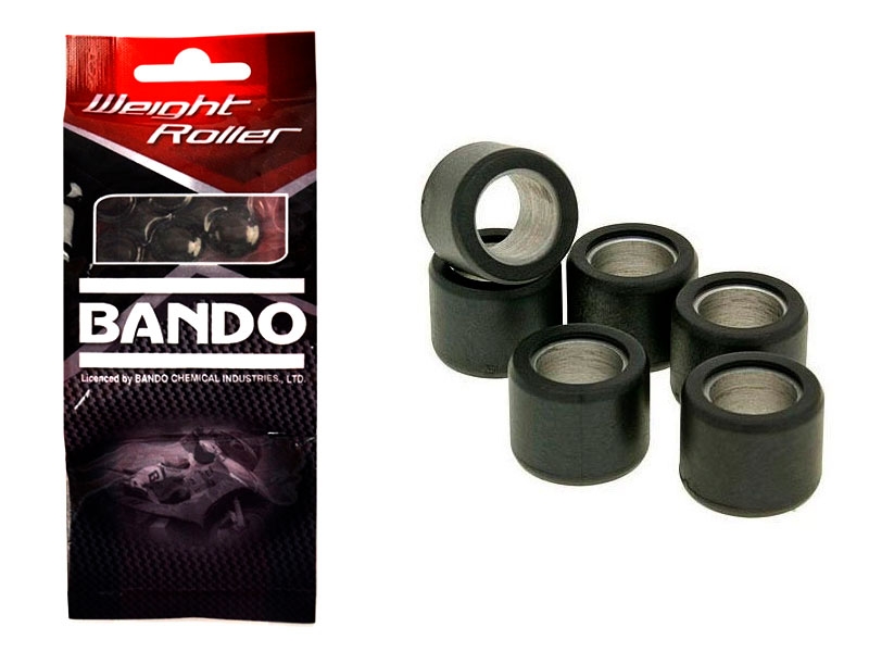 Rodillos Bando 22270329 25x15 14 gramos. Los rodillos Bando ofrecen un elevado rendimiento con una excelente calidad/precio. Estos rodillos de variador están realizados con resistentes bandas de nylon que permiten una mayor durabilidad además de un funcionamiento muy silenciosos. Disponible en una amplia gama de modelos para la principales scooters del mercado. La imagen mostrada es genérica.
