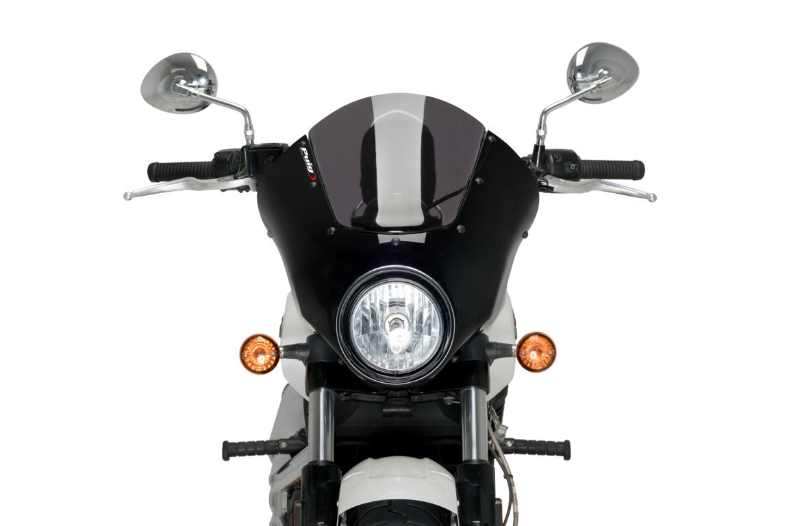 Semicarenado Dark Night Puig 21106F Indian Scout . El nuevo semicarenado Puig Dark Night te proporcionará una agradable experiencia de conducción, gracias a la mayor protección que ofrece contra el viento. El semicarenado Puig le aportará un aspecto más deportivo a tu moto Custom. El accesorio se entrega con un kit de montaje instrucciones y toda la tornillería necesaria para que su instalación sea rápida y sencilla.