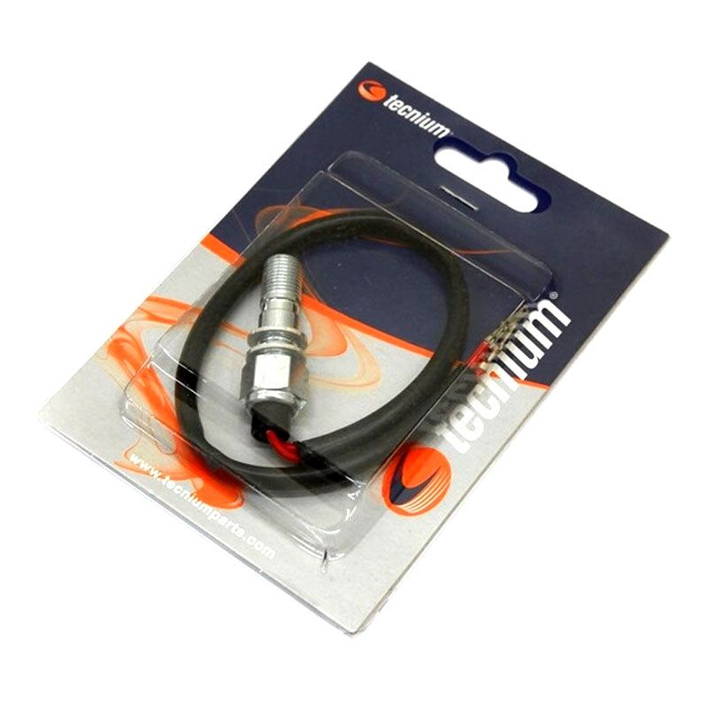 Sensor luz freno Tecnium CTO-273 M10x1,00 doble cable recto L:330mm 2 latiguillos 1112593. Banjo con sensor Tecnium CTO-273 doble cable recto L:330mm de freno métrica 10 x 100 para motos con 2 latiguillos. El sensor de 100 generalmente se instala en bombas de freno no originales; Brembo, Itr, Accossato,etc.