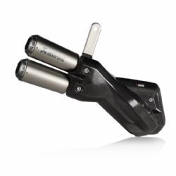 - Materiales de competición: Los silenciadores cónicos gemelos, inspirados en el diseño de los Grand Prix, están fabricados completamente en titanio, un material probado en carreras que ofrece una durabilidad excepcional y una reducción de peso significativa.