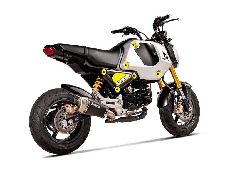 Silencioso escape Akrapovic S-H125SO4-ASZTBL Honda MSX 125 / Grom 2021-2022 (Titanium). El Slip-On Akrapovic S-H125SO4-ASZTBL se ha diseñado específicamente para cada modelo de moto y gracias a su diseño de vanguardia, ofrece un sonido característico con las máximas prestaciones que un silencioso de escape puede ofrecer. La funda exterior está realizada en titanio muy resistente y ligero. Con el montaje del silencioso de escape Slip-On Akrapovic S-H125SO4-ASZTBL se consigue también una notable reducción del peso respecto al escape original de la moto. También están disponibles los colectores opcionales y el conector de enlace. Cuando se monta con el juego de colectores o el conector de enlace, la ECU debe reasignarse.