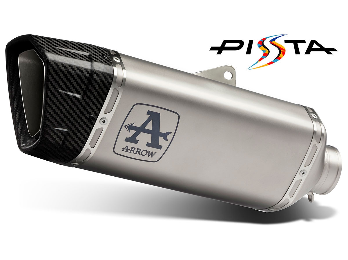 Silencioso escape Arrow 71005PT Pista Honda CBR 1000 RR-R 2020-2022. Pista es el nuevo escape de Arrow diseñado para las motos Superbike con más potencia. Este escape posee un diseño de lo más agresivo y ha sido desarrollado para ofrecer altas prestaciones, gracias a la utilización de la mejor tecnología junto con componentes de las más alta calidad. El silencioso Arrow Pista cuenta con el cuerpo en aleación especial de Titanio, terminal en fibra de carbono con entramado T-Will y material térmico de nueva generación en el interior. Entre sus ventajas encontramos una disminución aproximada del peso del 25% con respecto al silencioso de escape original y un aumento de la potencia entre el 3 y el 5% (según modelo).