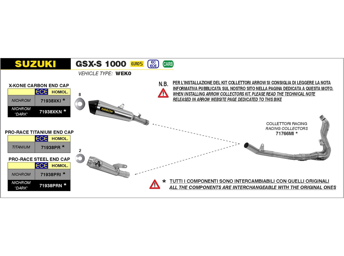 Silencioso escape Arrow 71938XKI X-Kone Suzuki GSX-S 1000 2021-2022. En un principio, Arrow diseño el silencioso de escape X-Kone para utilizar en algunos escapes de la linea Competition y Competition Full Titanium. Ahora el silencioso X-Kone también está disponible para algunos de los modelos de motos de media cilindrada más comercializados. Con el montaje del silencioso Arrow X-Kone no es necesario hacer modificaciones de mapas o la utilización de centralitas opcionales. Igualmente es aconsejable un control de los niveles de CO. (La información que facilita Ramirez Motoracing es orientativa y sujeta a la verificación en la web del fabricante).