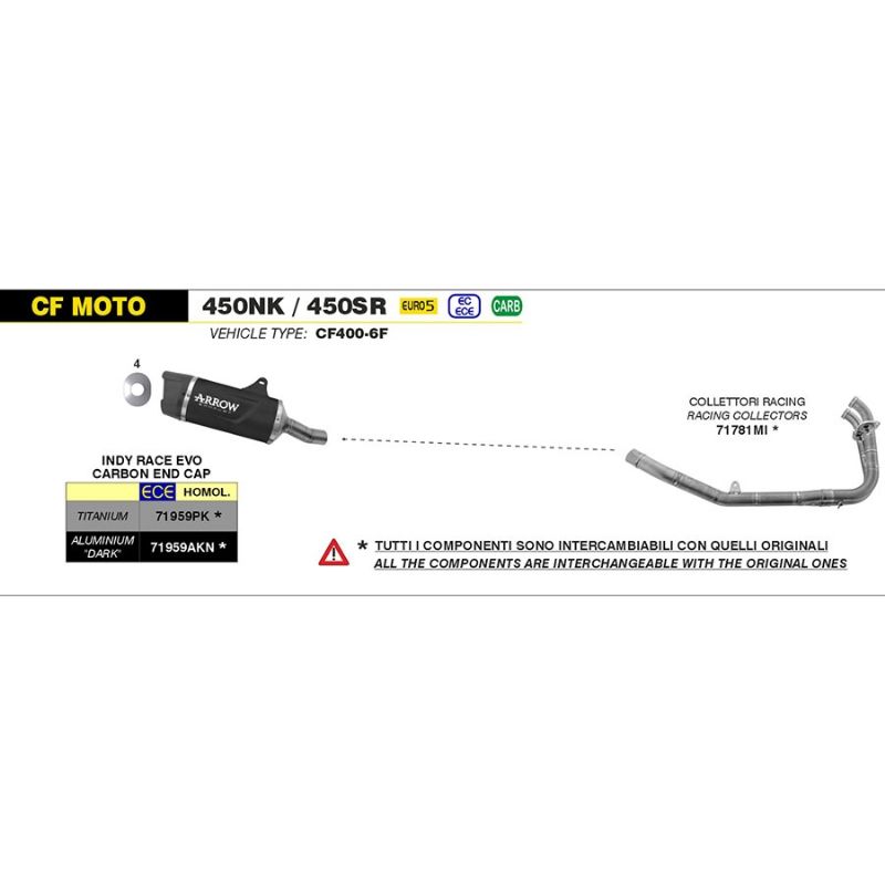 Caracaterísticas técnicas silencioso escape Arrow Indy Race EVO CF Moto 450NK / 450SR 2023: