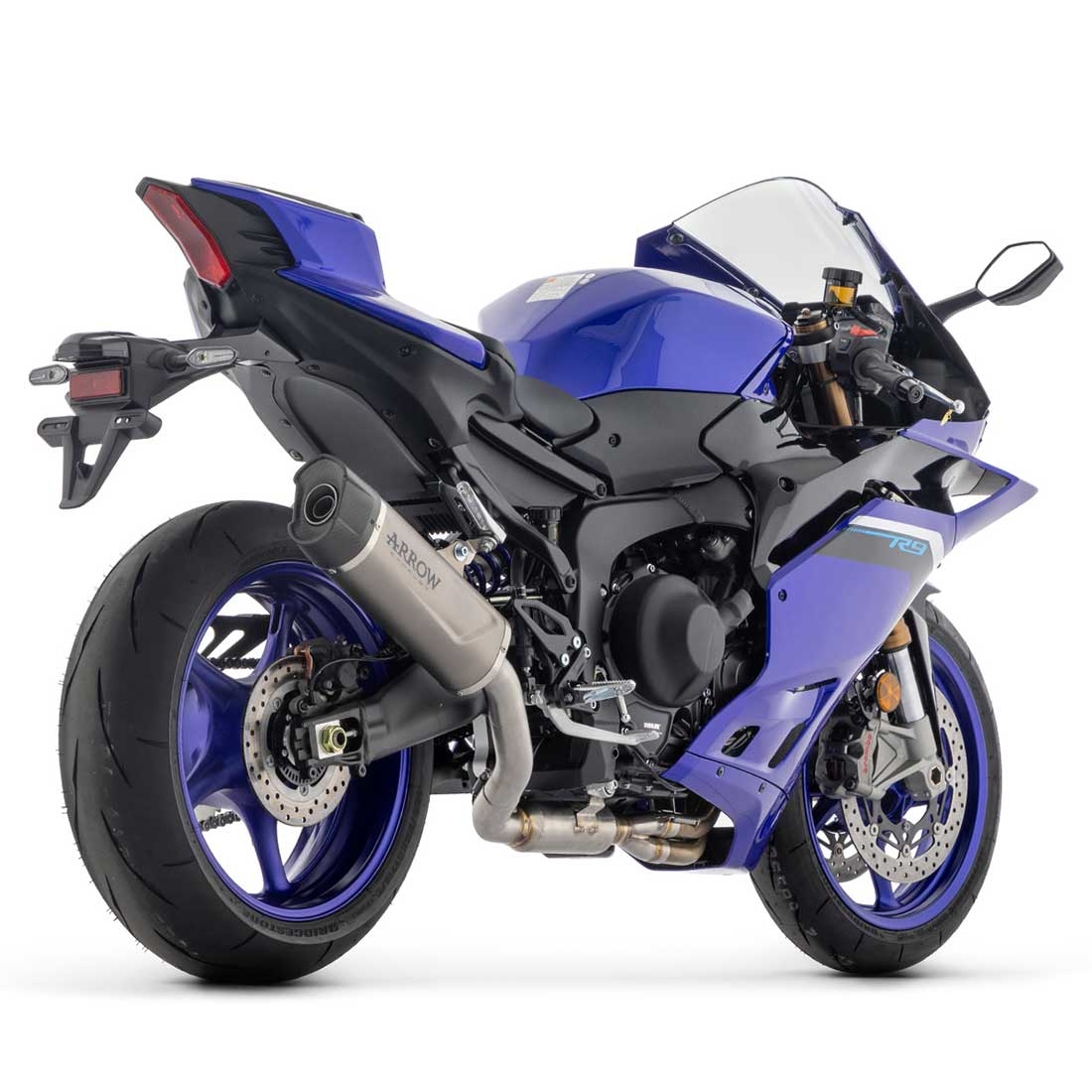 El silencioso, aunque homologado, necesita del colector racing Arrow 71081CC para poder montarse en la Yamaha YZF R9 2025 RNA.