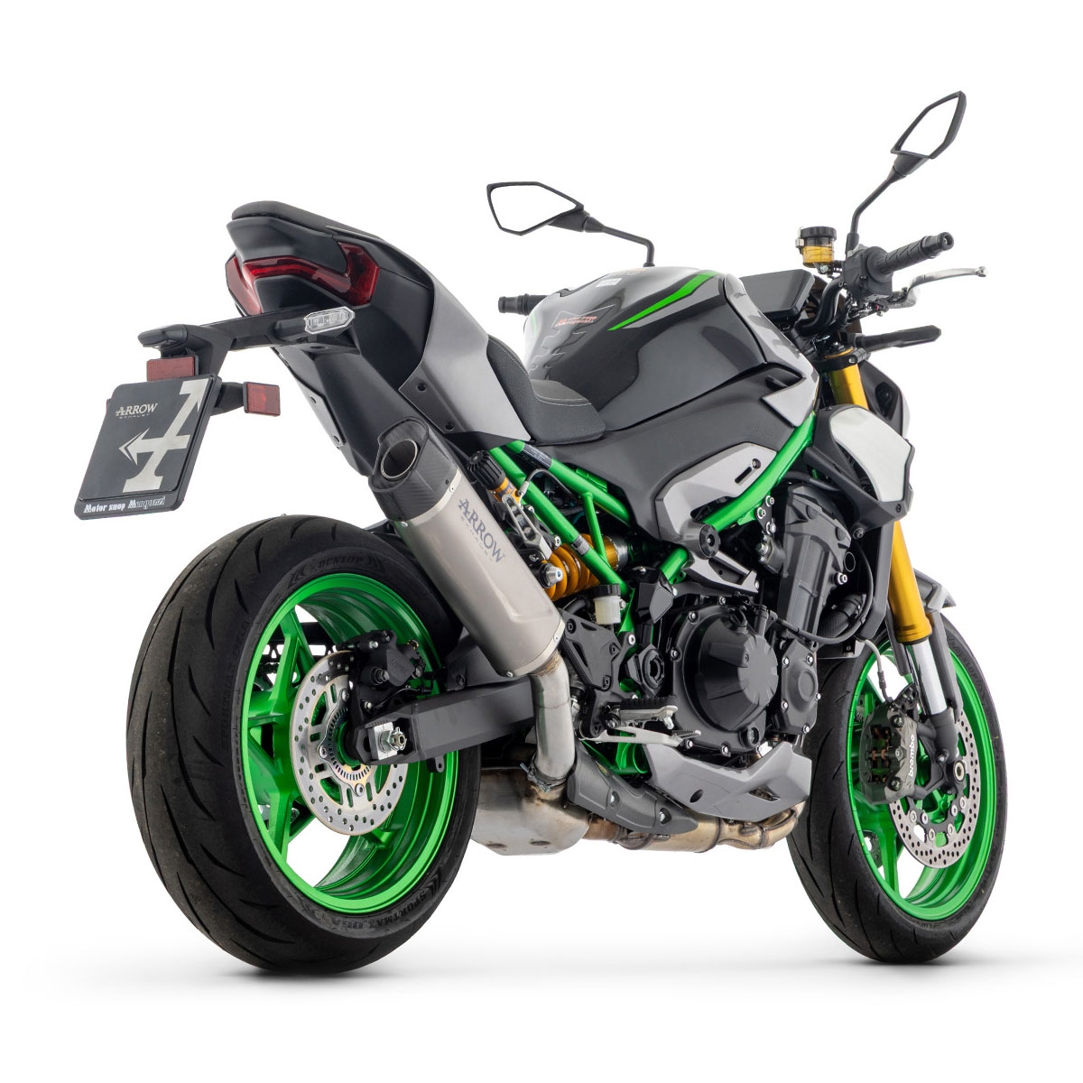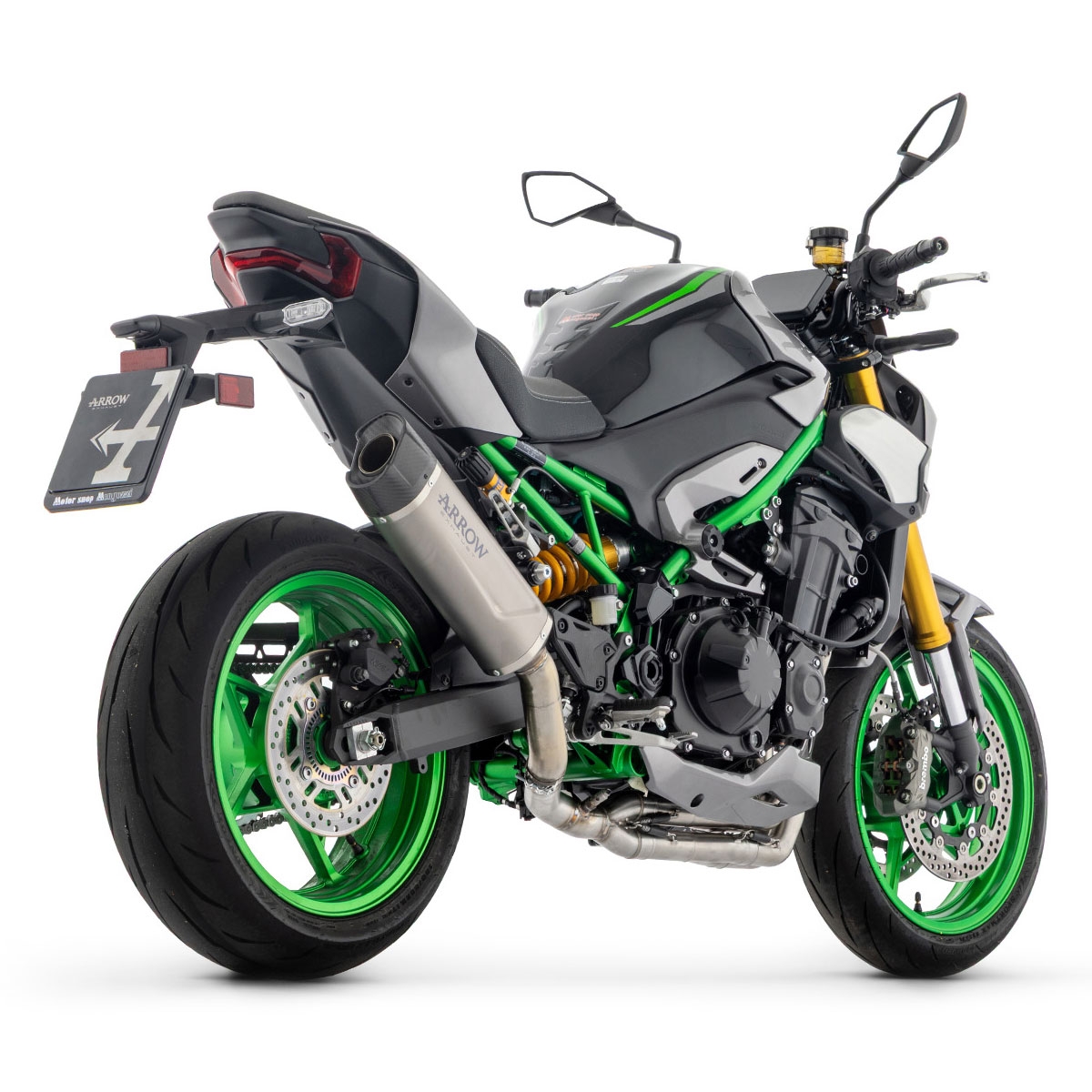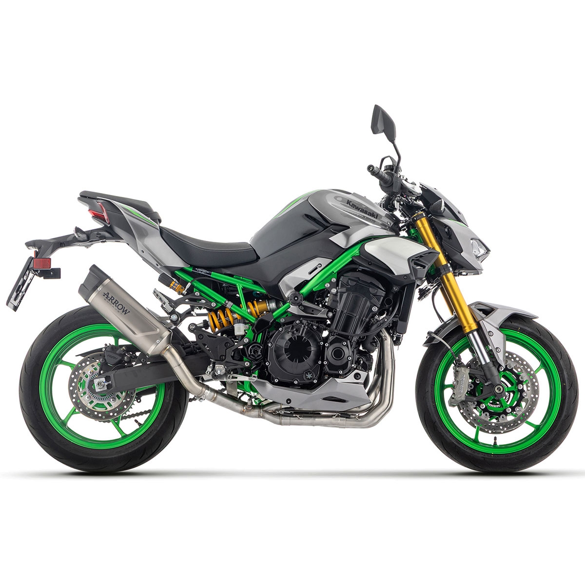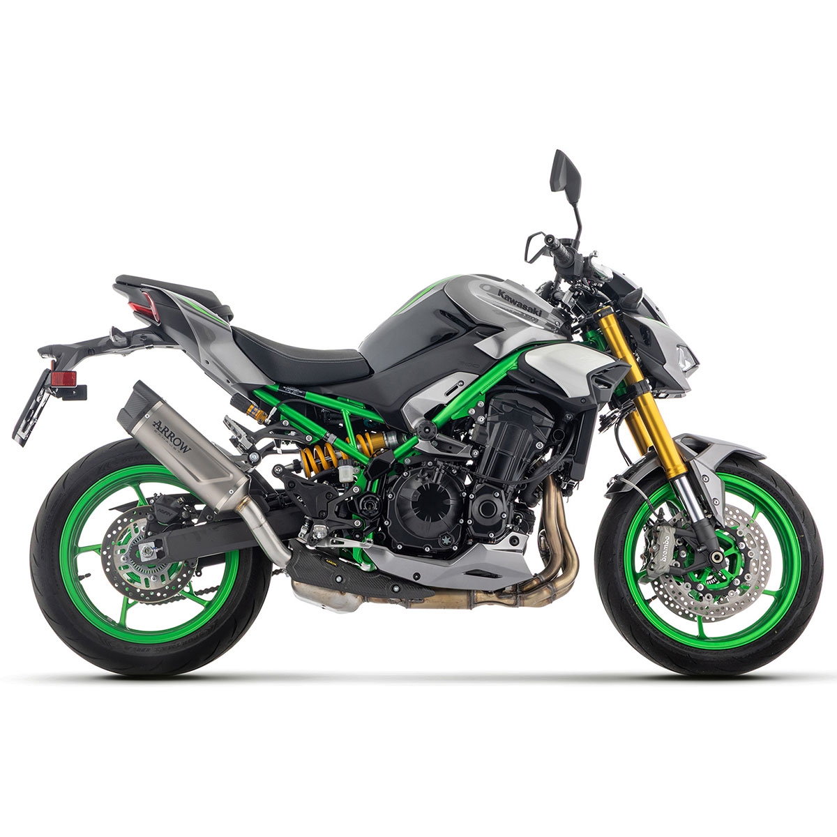 Gracias al uso de titanio y carbono, este silencioso Arrow no solo mejora el aspecto de la Z900, sino que reduce considerablemente el peso respecto al escape original, contribuyendo a una conducción más ágil y deportiva.
