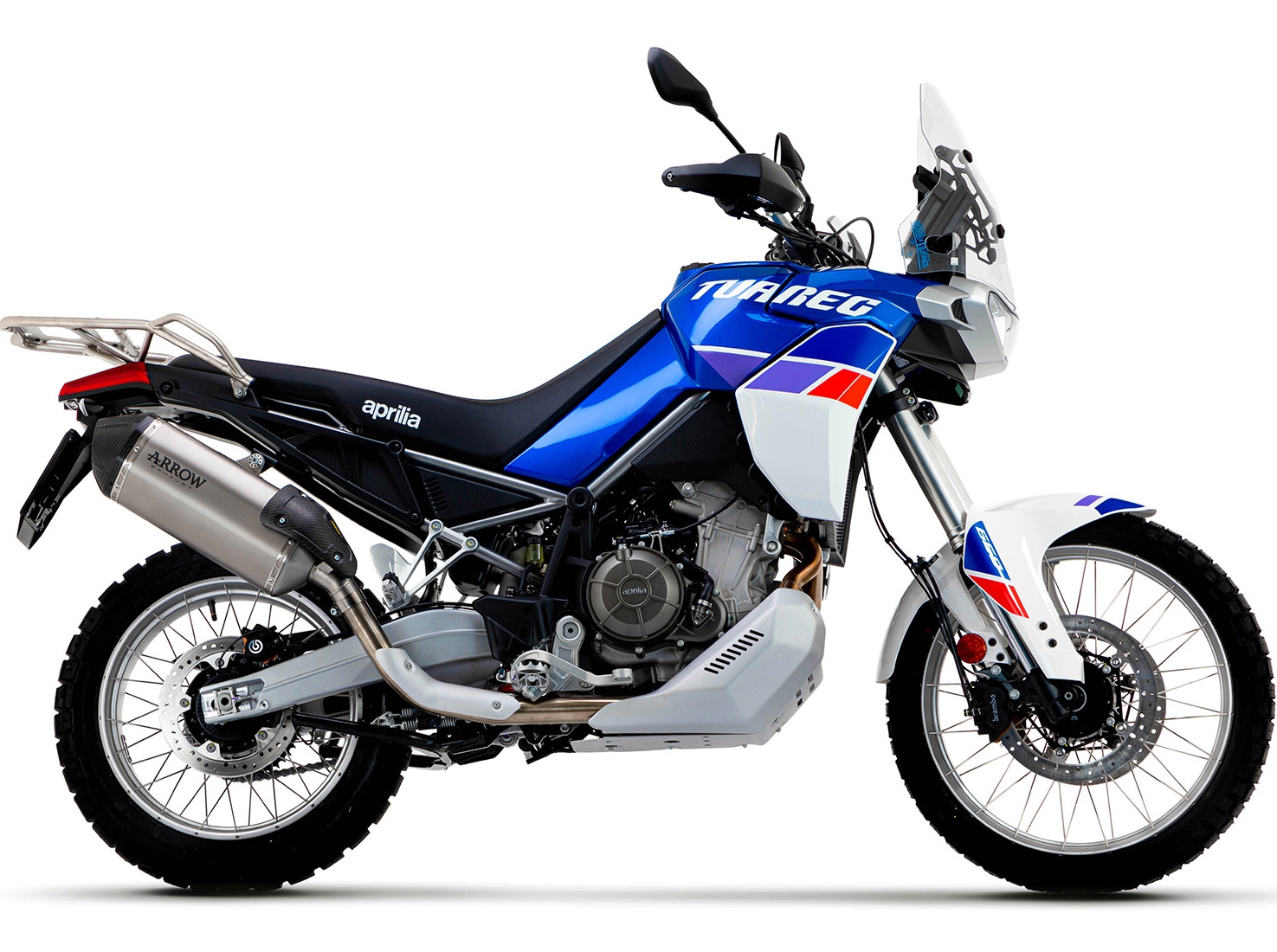 Pack ahorro escape Arrow escape específico para Aprilia Tuareg 660 2022. El pack incluye colector y silencioso (modelo a elegir).