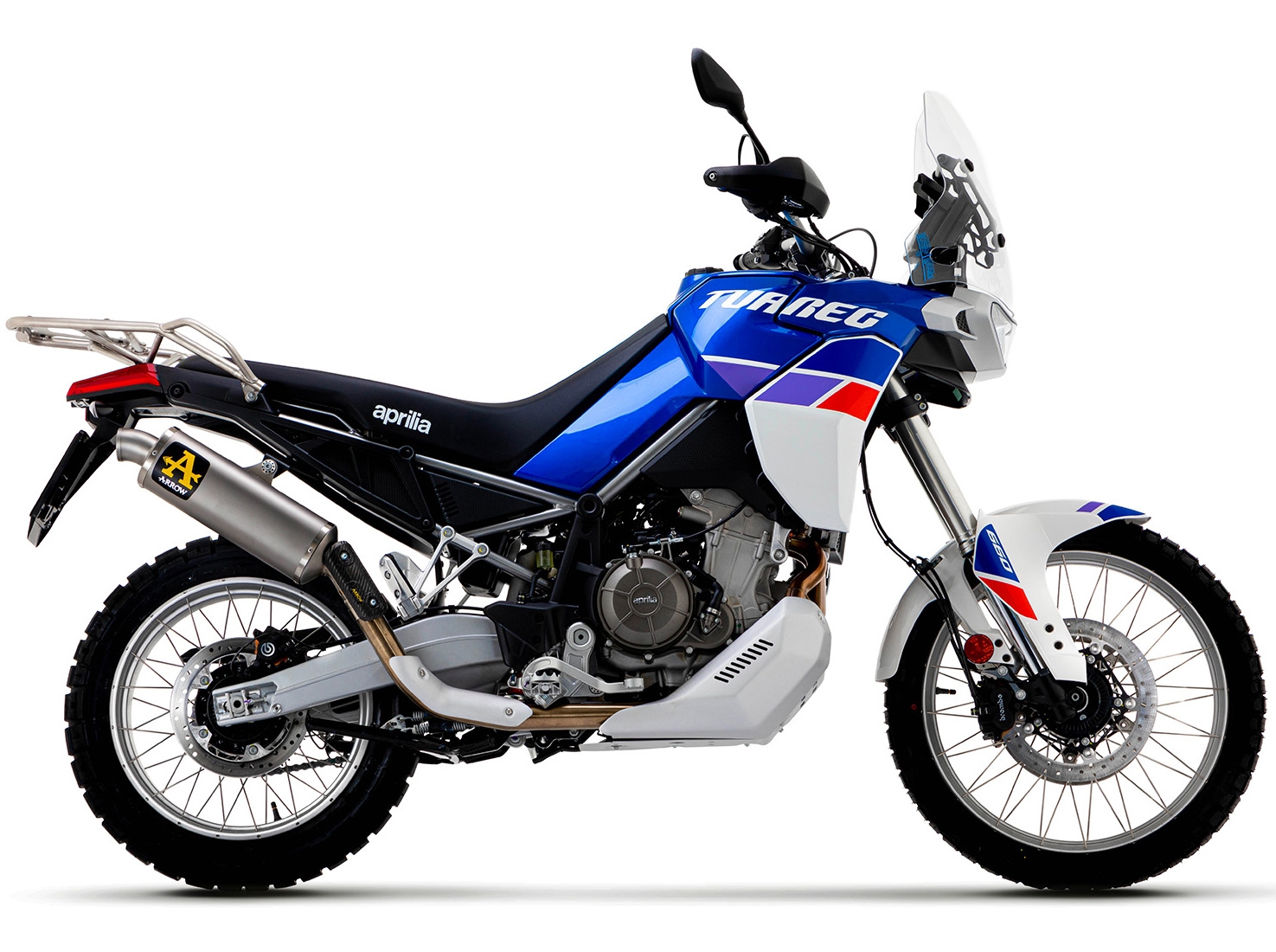 Pack ahorro escape Arrow escape específico para Aprilia Tuareg 660 2022. El pack incluye colector y silencioso (modelo a elegir).