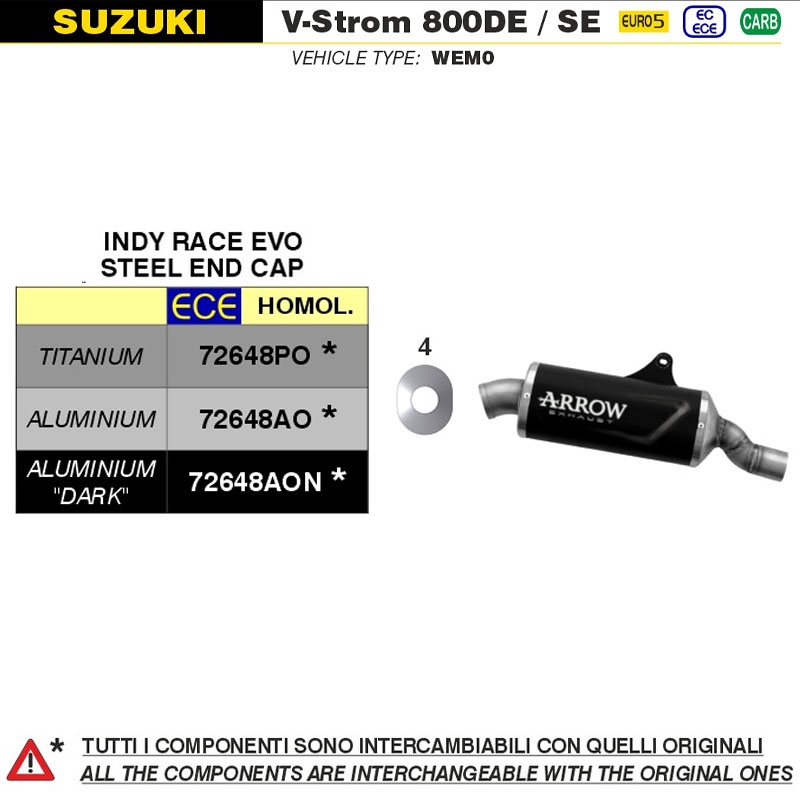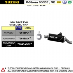 Opciones disponibles del silencioso escape Arrow Indy Race EVO para Suzuki V-STROM 800DE / SE 2023/2024: